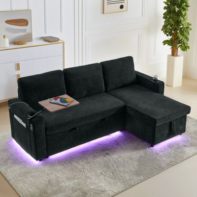This versatile sectional sleeper sofa combines durability, comfort, and smart design to enhance any living space. Built with a solid wood frame and reinforced metal connectors, it offers reliable support and long-term stability. The soft, breathable corduroy upholstery provides a cozy, skin-friendly texture that’s both stylish and easy to maintain. A pull-out middle loveseat quickly converts the sofa into a spacious sleeper bed—perfect for overnight guests or relaxed evenings at home. Thoughtful storage solutions include a right-facing chaise with a hidden compartment for blankets or seasonal items, along with built-in shelves in the armrests for remotes, books, and other essentials, helping you keep your space tidy and functional.