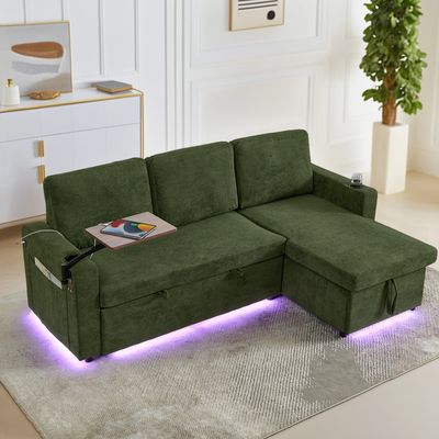 This versatile sectional sleeper sofa combines durability, comfort, and smart design to enhance any living space. Built with a solid wood frame and reinforced metal connectors, it offers reliable support and long-term stability. The soft, breathable corduroy upholstery provides a cozy, skin-friendly texture that’s both stylish and easy to maintain. A pull-out middle loveseat quickly converts the sofa into a spacious sleeper bed—perfect for overnight guests or relaxed evenings at home. Thoughtful storage solutions include a right-facing chaise with a hidden compartment for blankets or seasonal items, along with built-in shelves in the armrests for remotes, books, and other essentials, helping you keep your space tidy and functional.