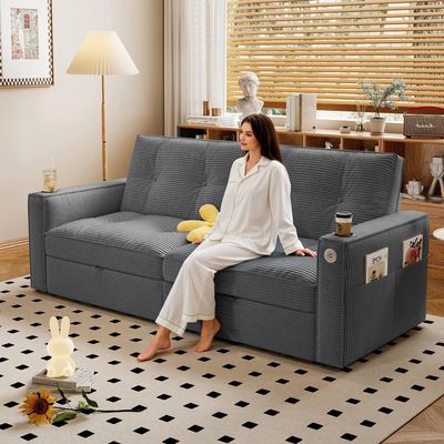 After a tiring workday, sink into this corduroy sofa to relax with tea or a movie—your cozy private corner. When friends visit overnight, just pull the bottom handles to effortlessly turn it into a spacious guest bed in seconds, no extra sleeping space needed. Ideal for dorms, studios and home offices: it’s a stylish sofa for studying/working by day and a comfortable bed by night, maximizing small space. Sturdy and breathable, it blends practicality with comfort, adding warmth to daily life.