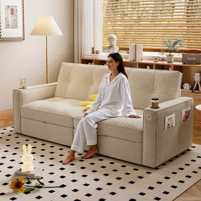 After a tiring workday, sink into this corduroy sofa to relax with tea or a movie—your cozy private corner. When friends visit overnight, just pull the bottom handles to effortlessly turn it into a spacious guest bed in seconds, no extra sleeping space needed. Ideal for dorms, studios and home offices: it’s a stylish sofa for studying/working by day and a comfortable bed by night, maximizing small space. Sturdy and breathable, it blends practicality with comfort, adding warmth to daily life.